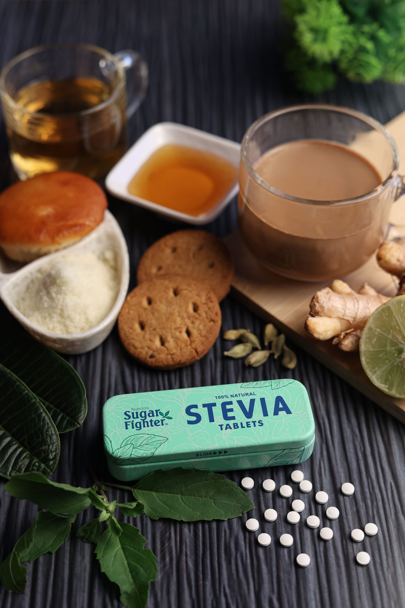 | Description | SUGAR FIGHTER tablets Container are easy to use and can also becarried anywhere which makes it comfortable to carry while traveling and control the sugar intake. These tablets are easy to carry and can be easily dissolved in any hot or cold beverages all it needs to just add and stir and it gets dissolved. Net Weight : 10 mg | SUGAR FIGHTER stevia liquid Container are easy to use and can also becarried anywhere which makes it comfortable to carry while traveling and control the sugar intake. These liquid container are easy to carry and can be easily dissolved in any hot or cold beverages all it needs to just add and stir and it gets dissolved. Net Weight : 30 ml | SUGAR FIGHTER Stevia sachets contain pre - measuredquantity in a powder form. This makes it convenient to use anywhere, anytime at work or while traveling. Stevia sachet can dissolve in hot and cold beverages and foods smoothly and without excessive stirring. The active compound here contains 200 -300 times the sweetness of sugar and each sachet equals 2-3 teaspoons of sugar. Net Weight : 1 gm | SUGAR FIGHTER Stevia sachets contain pre - measuredquantity in a powder form. This makes it convenient to use anywhere, anytime at work or while traveling. Stevia sachet can dissolve in hot and cold beverages and foods smoothly and without excessive stirring. The active compound here contains 200 -300 times the sweetness of sugar and each sachet equals 2-3 teaspoons of sugar. Net Weight : 1 gm | SUGAR FIGHTER Stevia Jar contains natural sweeteners in powder form that is prepared from the natural sweetener and can be used in any food product. The contents are heat -stable. Comfortable for use for both hot and cold products with health -enhancing attributes and is a safe choice for all. Net Weight : 250 gm | SUGAR FIGHTER Stevia dry leaves are a natural sweetener that is very low in calories. It is extracted from the Stevia plant and is used to provide a sweet taste in food and beverages. Stevia dry leaves contain many vital minerals, vitamins that are selectively absent in the artificial sweeteners. It is a perfect wayto remain fit and healthy without any compromise with taste and health. Net Weight : 50 gm |